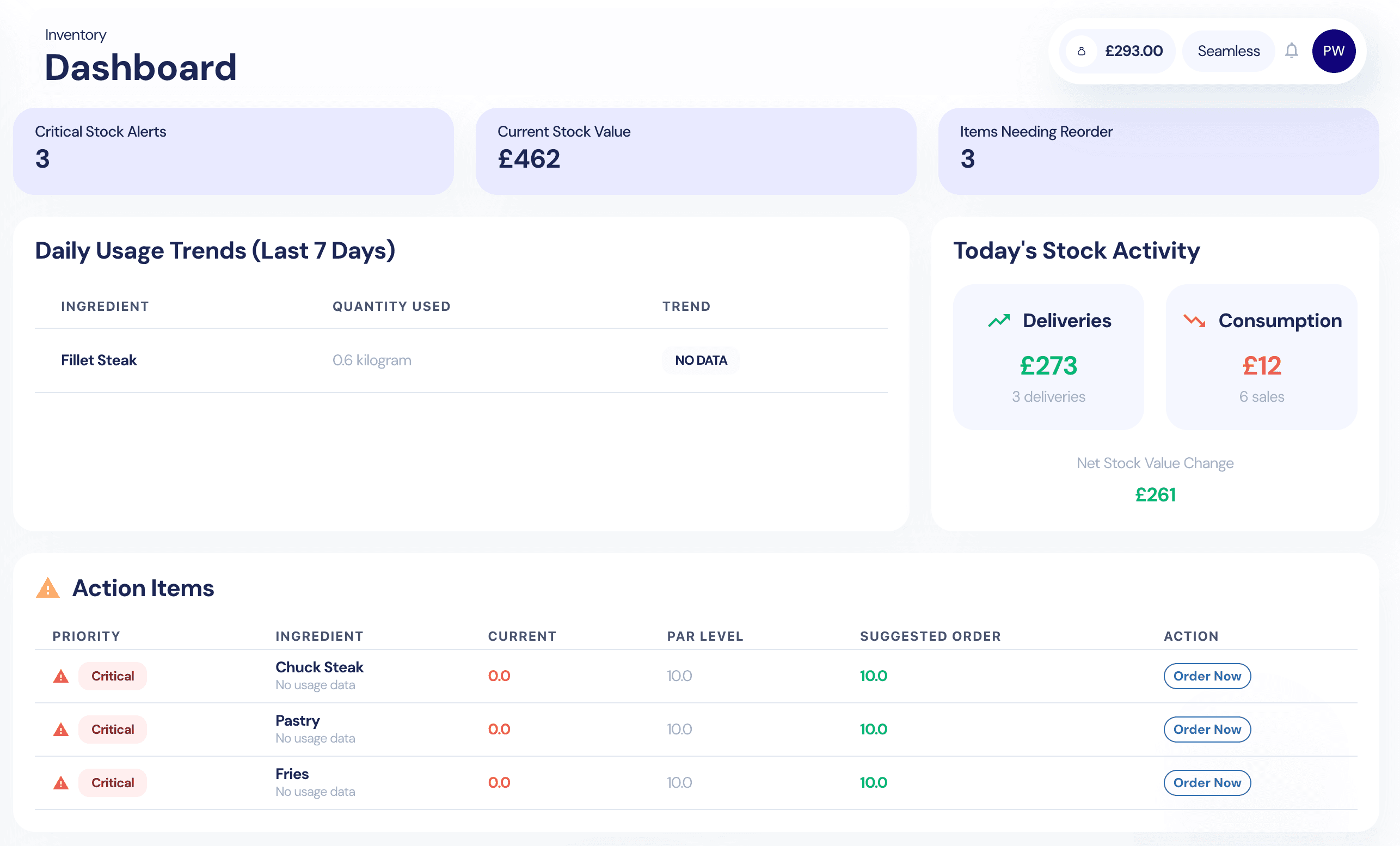 Seamless POS Stock Manager is designed to give independent hospitality operators complete control over their inventory. From tracking ingredients in real time to preventing costly waste, our cloud-based stock management tools help restaurants, bars, cafés, and pubs streamline operations and boost profitability. With simple, intuitive design and seamless integration into your point of sale system, you can easily monitor stock levels, automate supplier ordering, and reduce admin time. Unlike other EPOS solutions, Seamless POS puts venue owners in control with transparent pricing, flexible integrations, and full freedom to choose your payment provider. Whether you run a busy bar, a neighbourhood café, or a multi-site restaurant group, Seamless POS makes managing stock simple, accurate, and stress-free.Seamless POS Stock Manager is designed to give independent hospitality operators complete control over their inventory. From tracking ingredients in real time to preventing costly waste, our cloud-based stock management tools help restaurants, bars, cafés, and pubs streamline operations and boost profitability. With simple, intuitive design and seamless integration into your point of sale system, you can easily monitor stock levels, automate supplier ordering, and reduce admin time. Unlike other EPOS solutions, Seamless POS puts venue owners in control with transparent pricing, flexible integrations, and full freedom to choose your payment provider. Whether you run a busy bar, a neighbourhood café, or a multi-site restaurant group, Seamless POS makes managing stock simple, accurate, and stress-free.