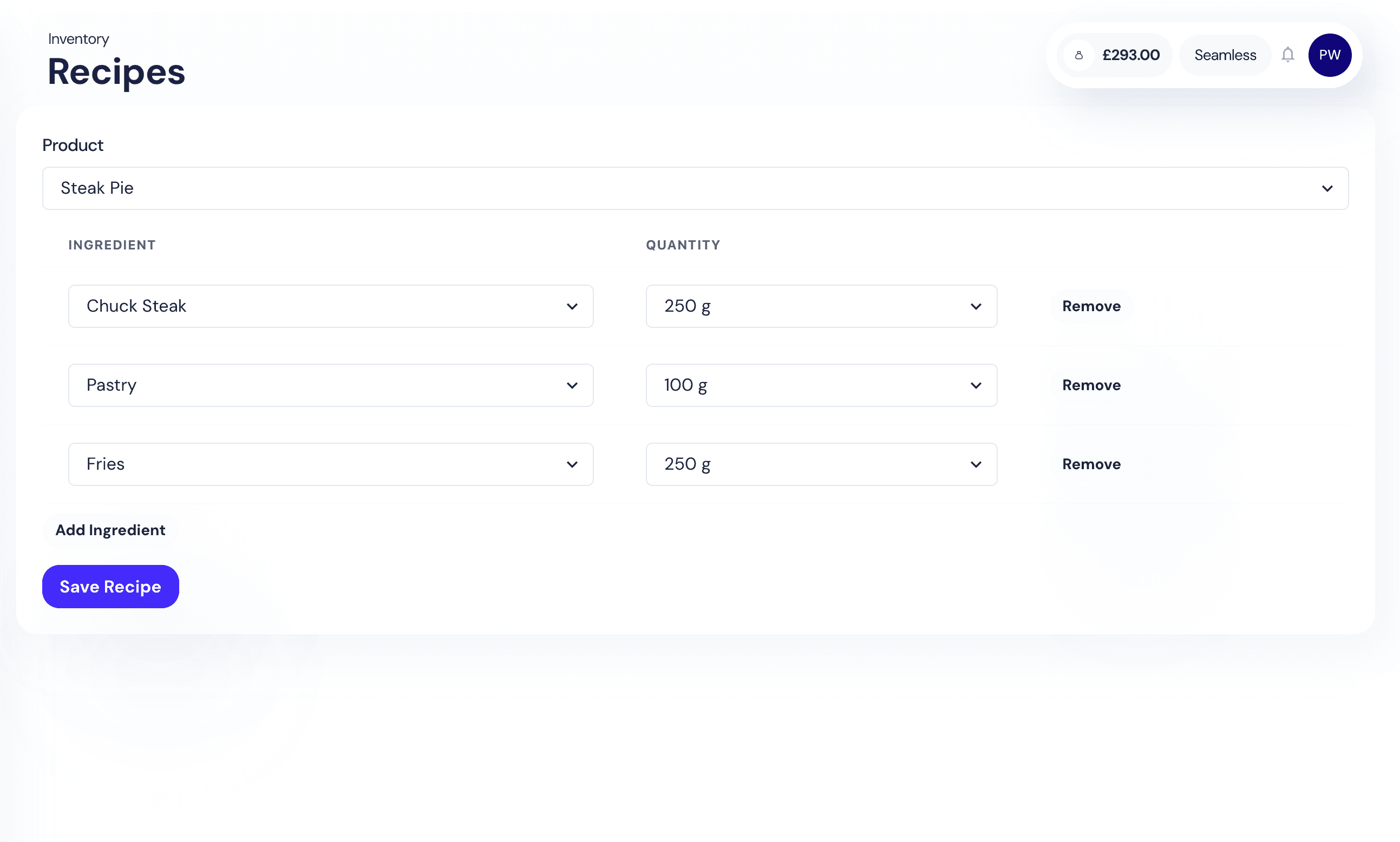 Use our setup wizard to build and manage recipes directly inside Seamless POS. Our Stock Manager lets you set up suppliers, define each ingredient, portion size, and cost so you always know your true margins. Whether you’re running a cocktail bar, a steakhouse, or a café, recipes automatically update stock levels with every sale — no more manual adjustments or hidden losses. With complete flexibility, you can adapt menus quickly, compare dish profitability, and keep waste to a minimum while maintaining consistency across your kitchen or bar team.